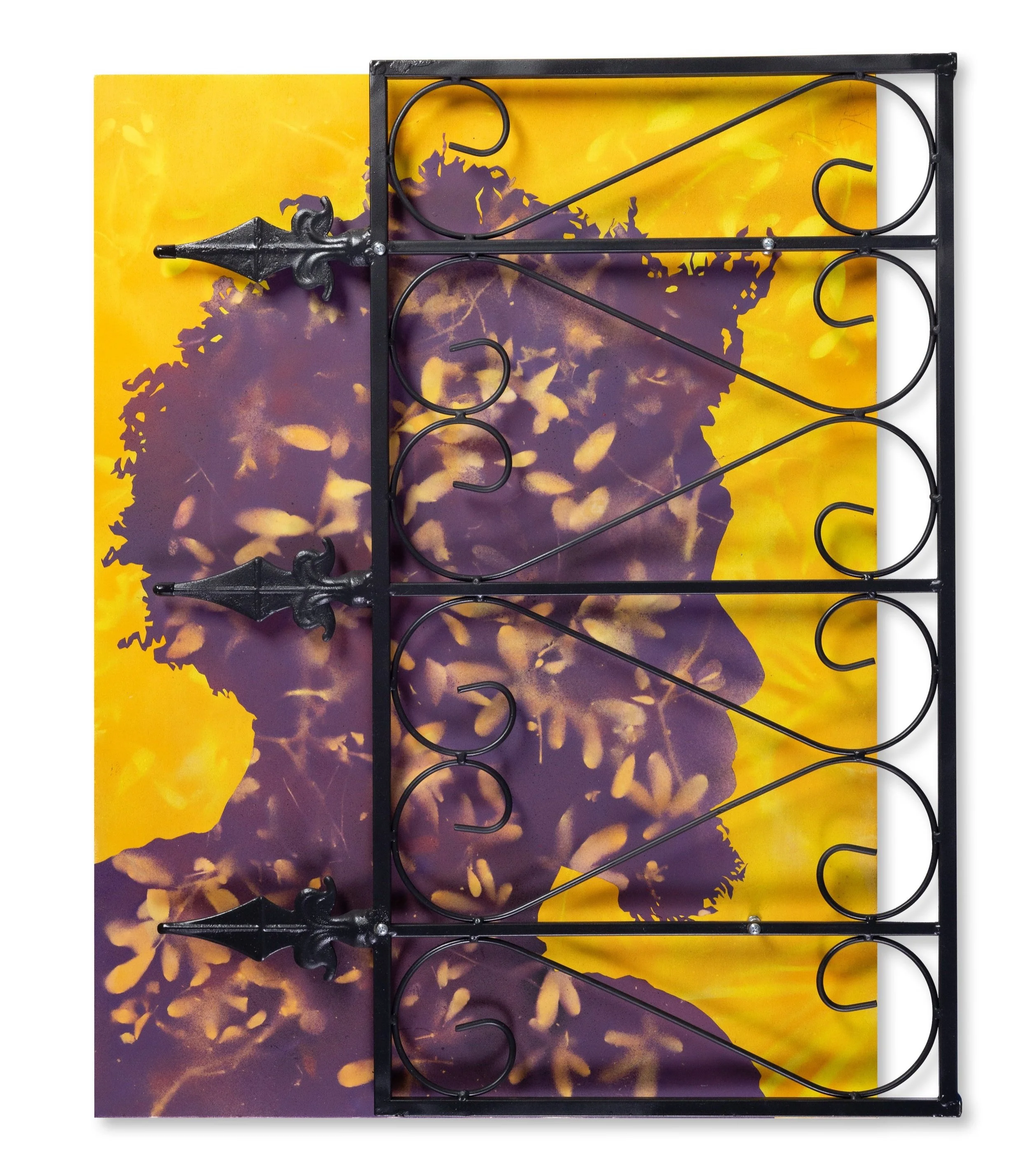 Medium: Mixed media on wooden panel (Aerosol paint, metal, and Indigenous Flora)